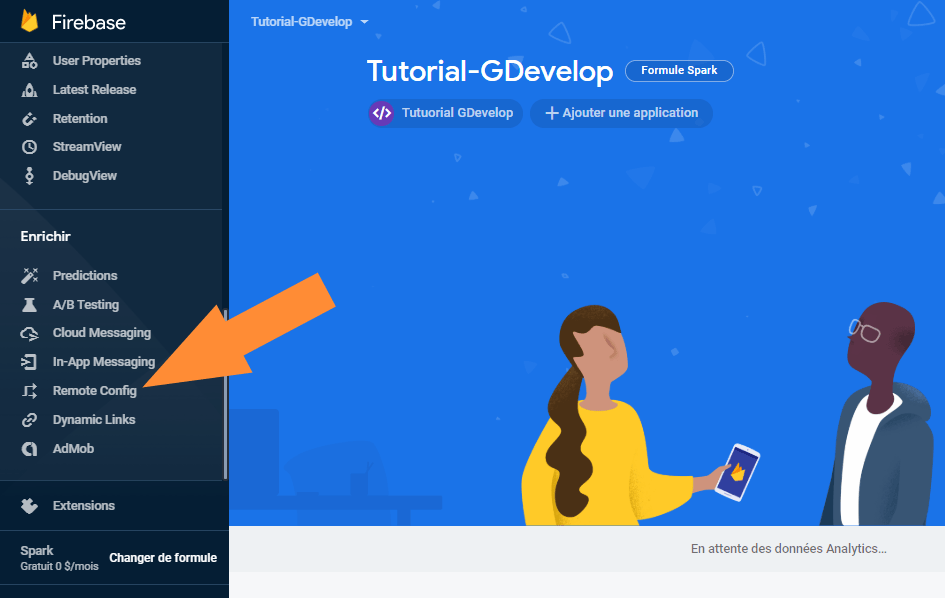Now we need to also set up Firebase. Go on the apps dashboard and then on Remote Configuration: