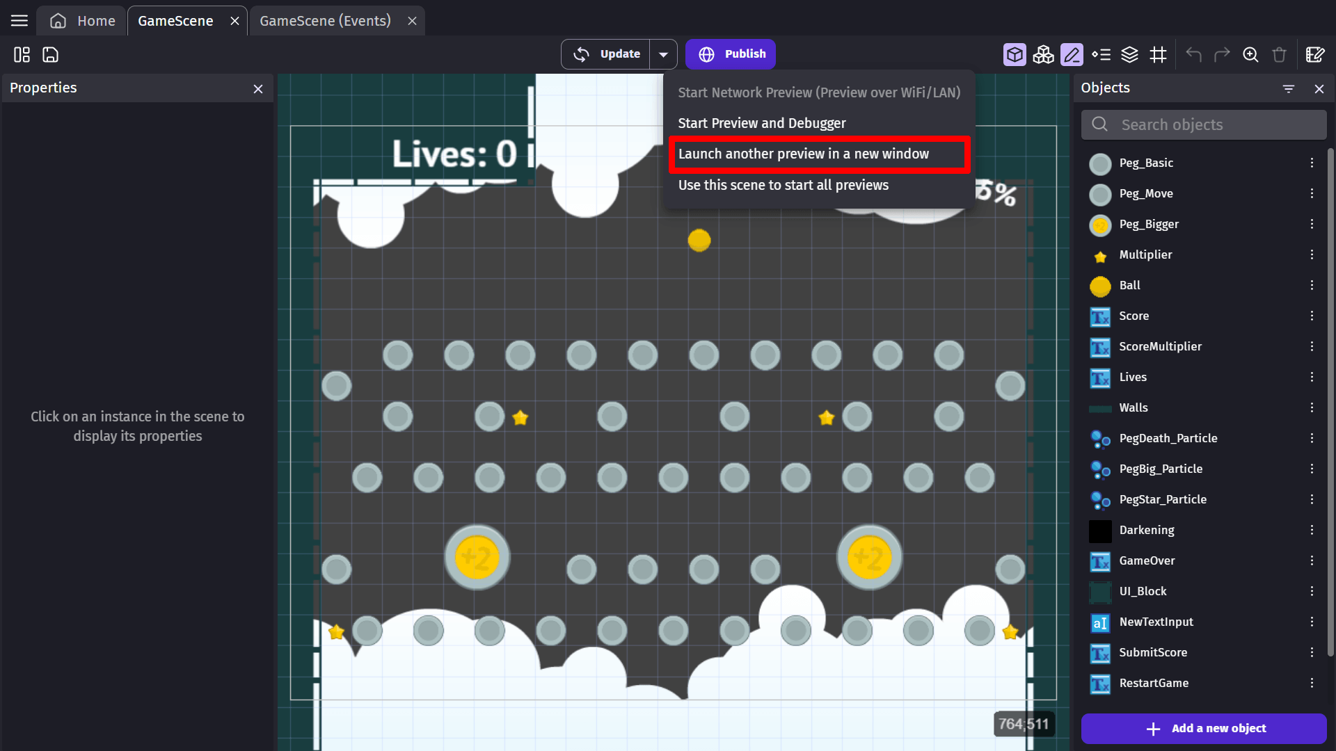 While a preview is running, you can open the drop-down menu beside the preview button to show a menu where you can launch another preview in a new window. This is useful for testing games with networking or just to test multiple iterations of your game.
